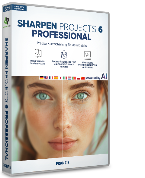 SHARPEN projects 6 professional verwandelt unscharfe und verwackelte Fotos in gestochen scharfe Meisterwerke - vollautomatisch oder mit professioneller Kontrolle. Die intelligente Software analysiert jedes Bild individuell und korrigiert Bewegungsunschärfe, Verwacklungen und Fokusschwächen präzise, während glatte Bereiche natürlich bleiben. Mit RAW-Converter und Stapelverarbeitung.