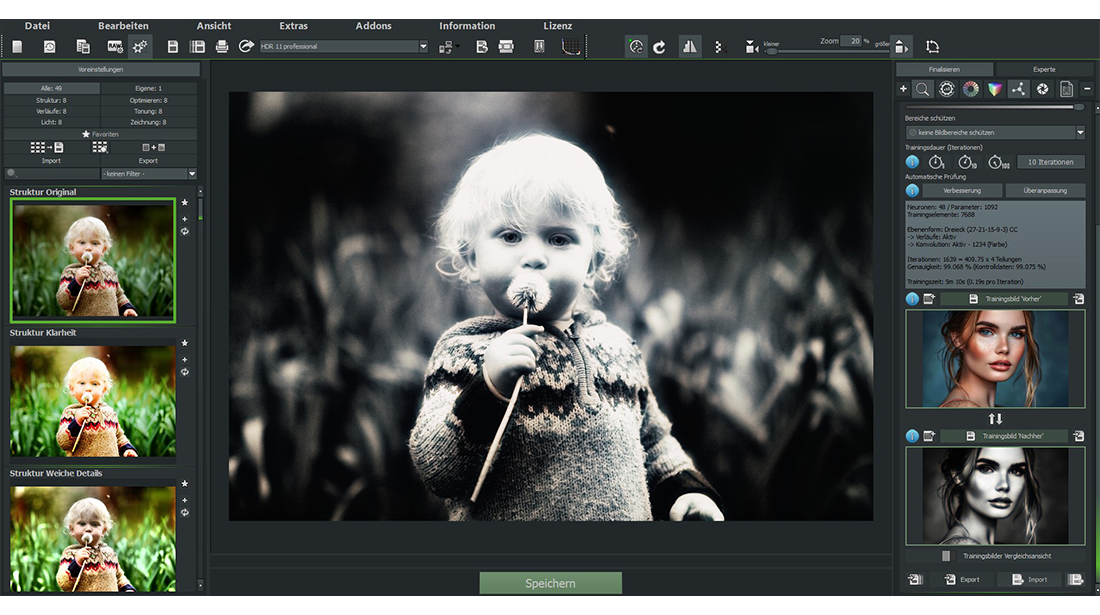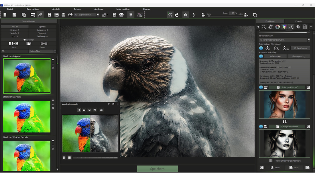 Komplexe Looks in Sekunden: Ihr persönlicher KI-Assistent für einen perfekten Workflow. Trainieren Sie Ihre eigene KI mit nur einem Klick, lokal auf Ihrem PC. So entstehen Einzigartige Styles statt Standard-Filter.